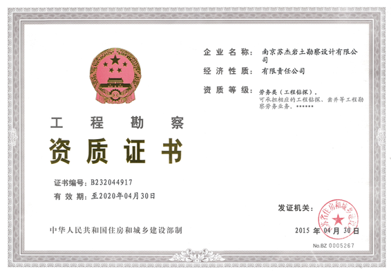 工程勘察專(zhuān)業(yè)甲級(jí)證書(shū)